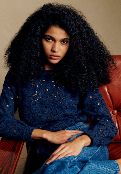 - Embroidered band along placket and neckline