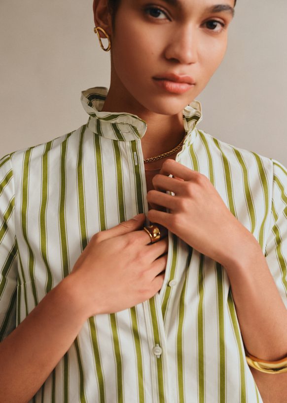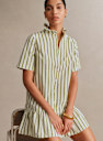 - Short-sleeve short dress in striped cotton poplin