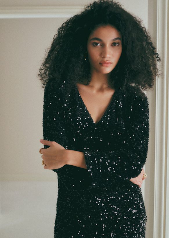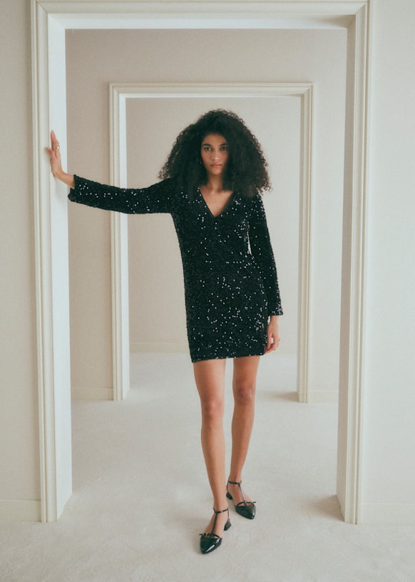 - Sequin velvet short dress