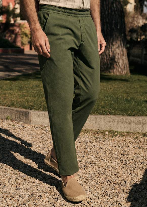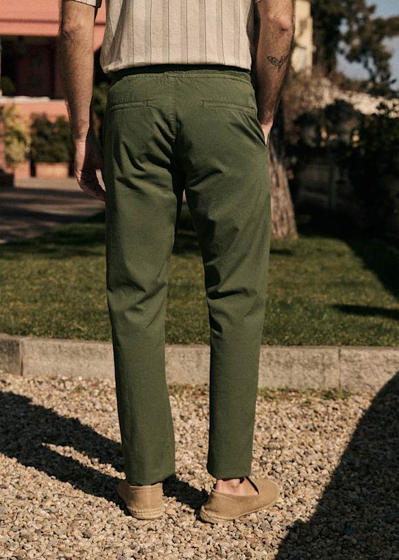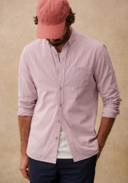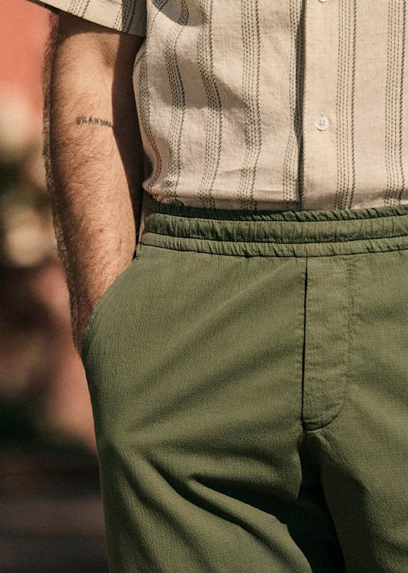 A very wearable fabric! This organic cotton seersucker with its lightly embossed texture enhances our Danny Pants. Its lightness makes it a perfect choice for warmer weather.