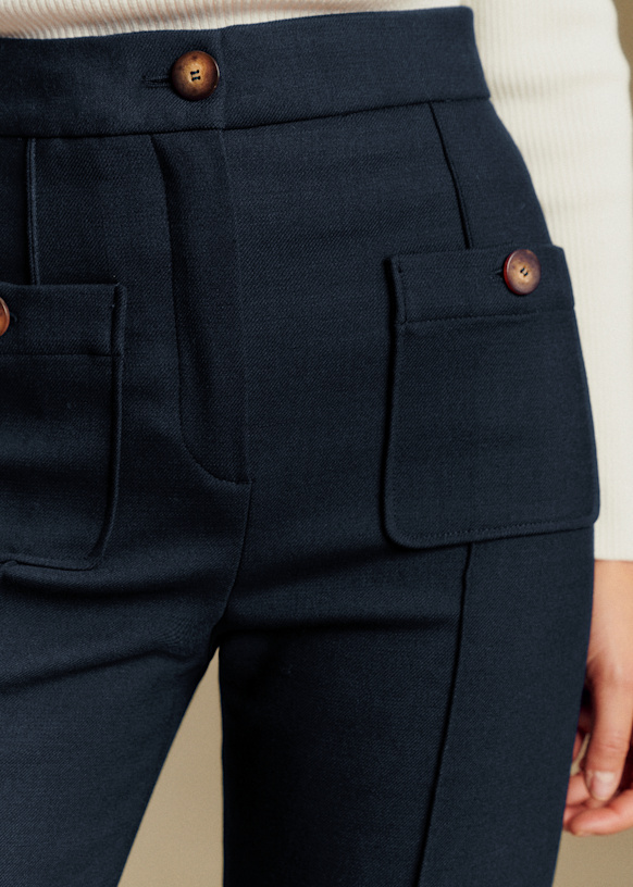 - Aufgesetzte Taschen mit Knopf vorn, Paspeltaschen hinten