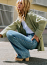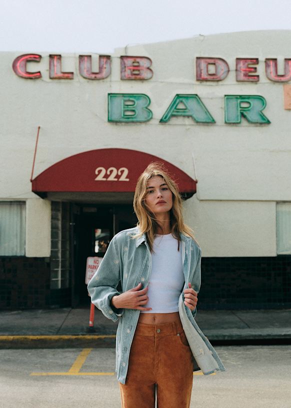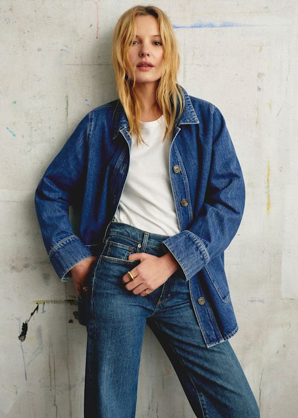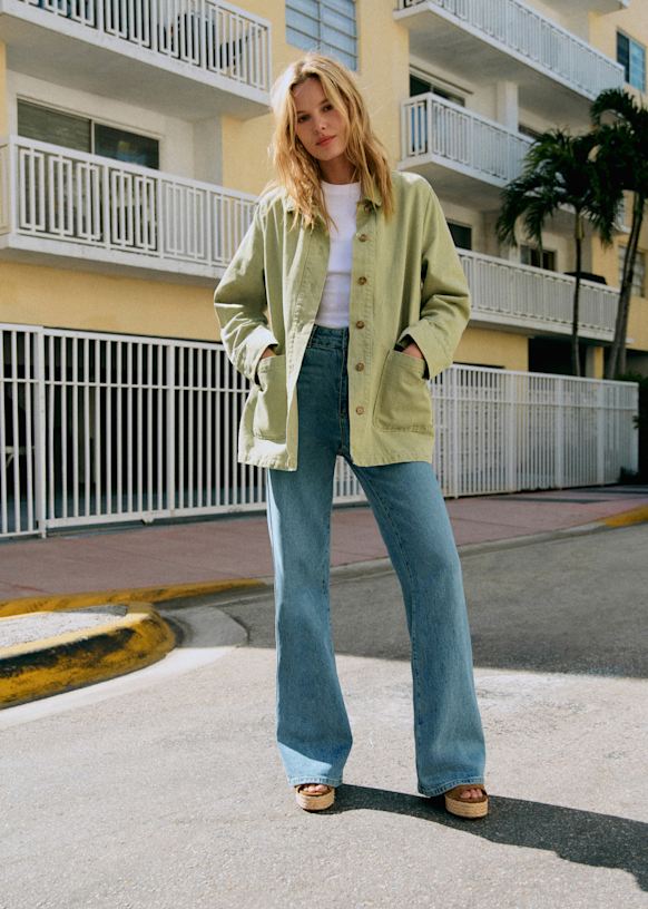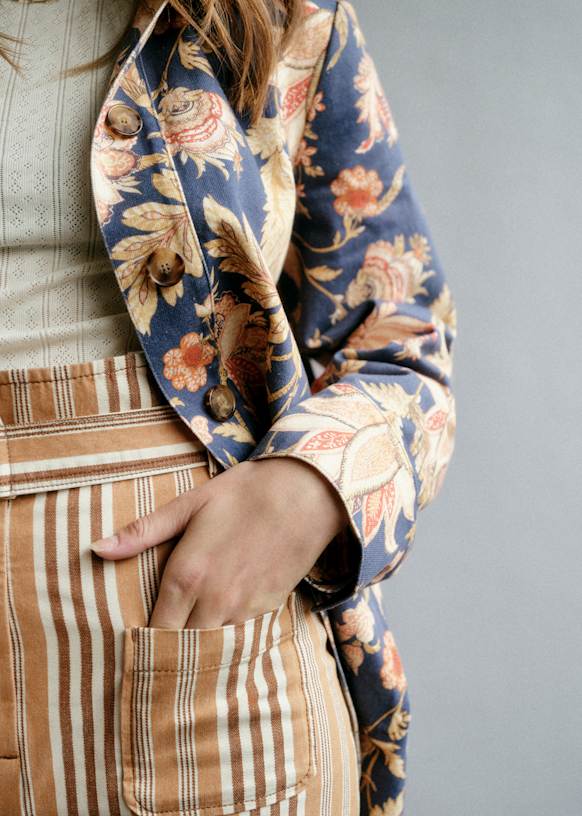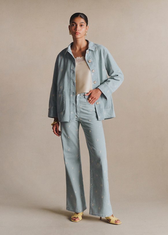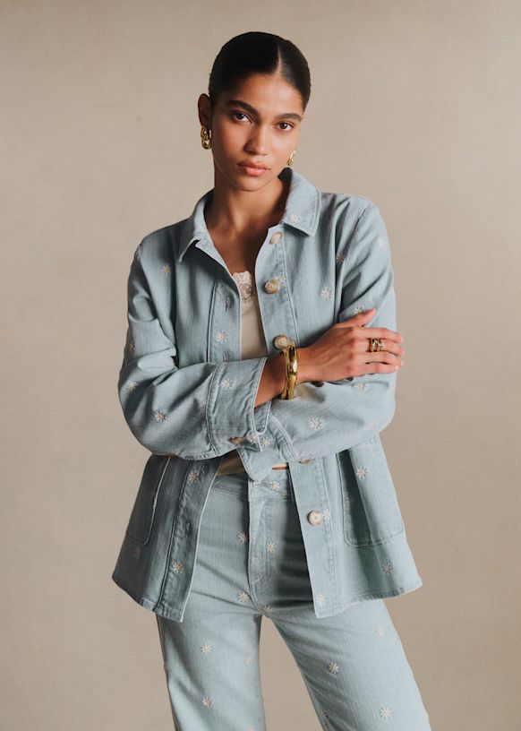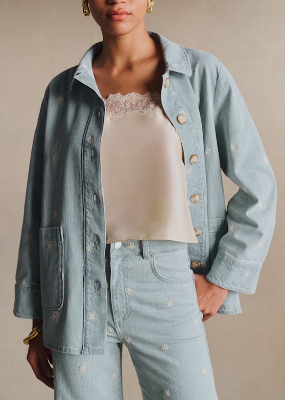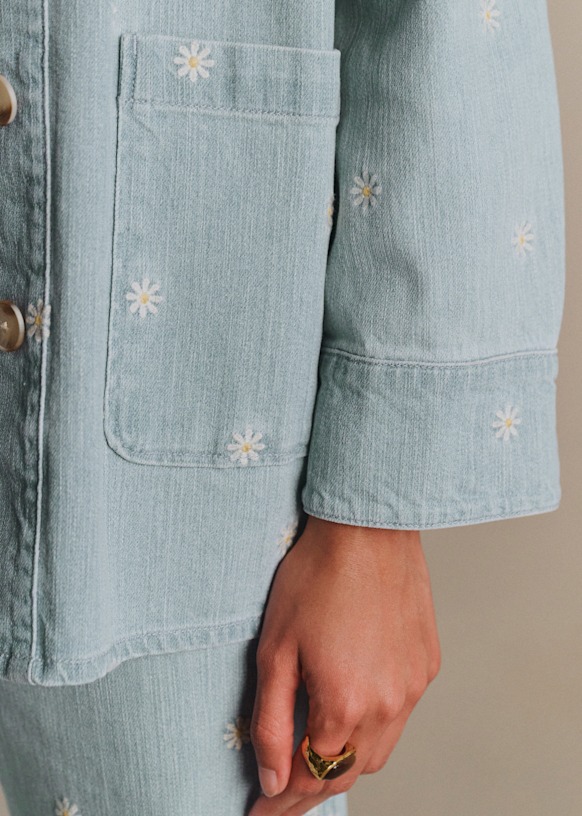 - Long-sleeved printed denim jacket