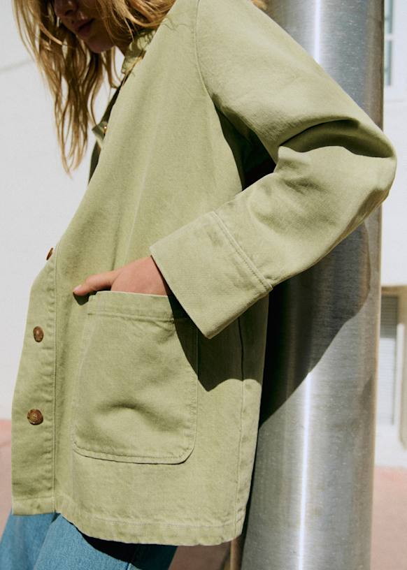- Button closure on the front