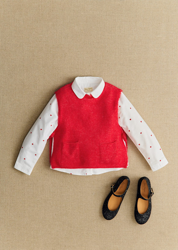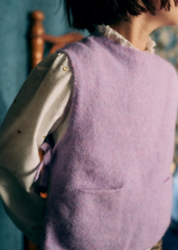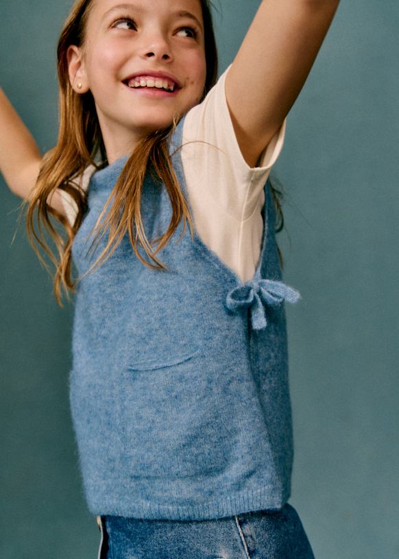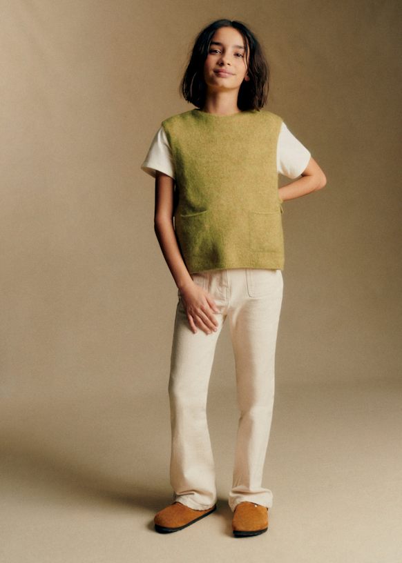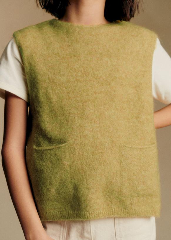- Baby alpaca and merino wool sleeveless bib-front jumper
