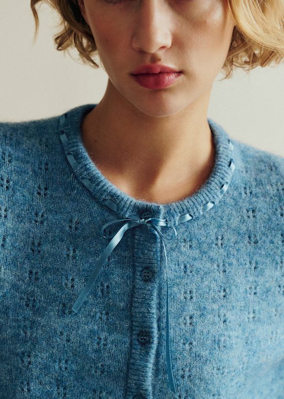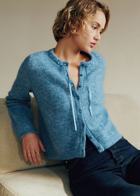 - Short cardigan in merino wool and super kid mohair with long sleeves