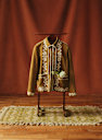 The arabesque embroidery work applied to dark leather is inspired by Transylvanian traditions as well as the craftsmanship of northern Mexico.