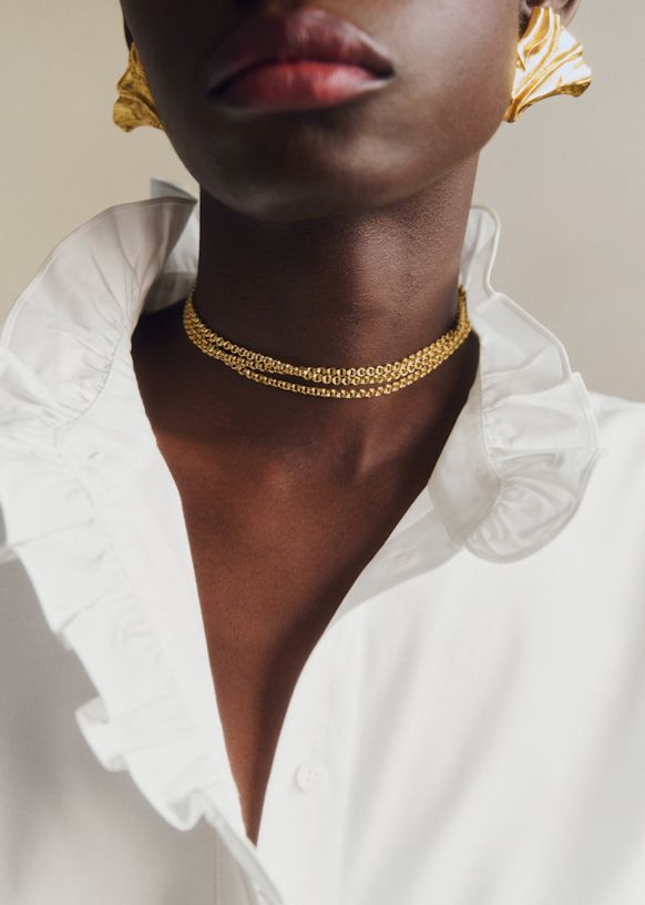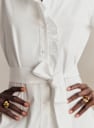 - Volantes en la tapeta de abotonado y en el cuello