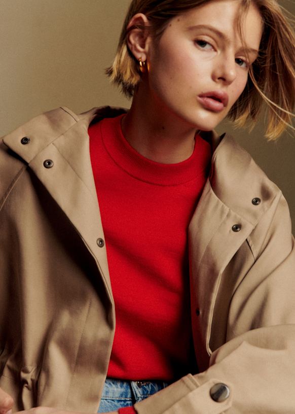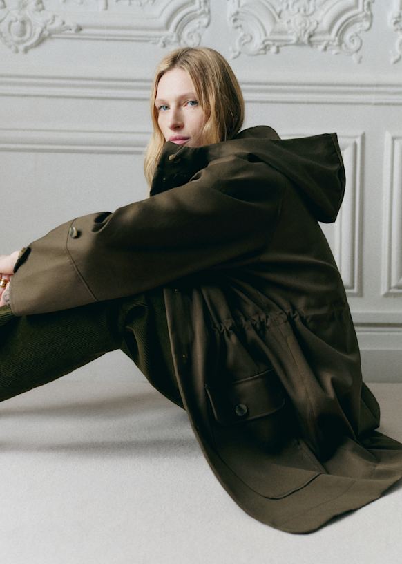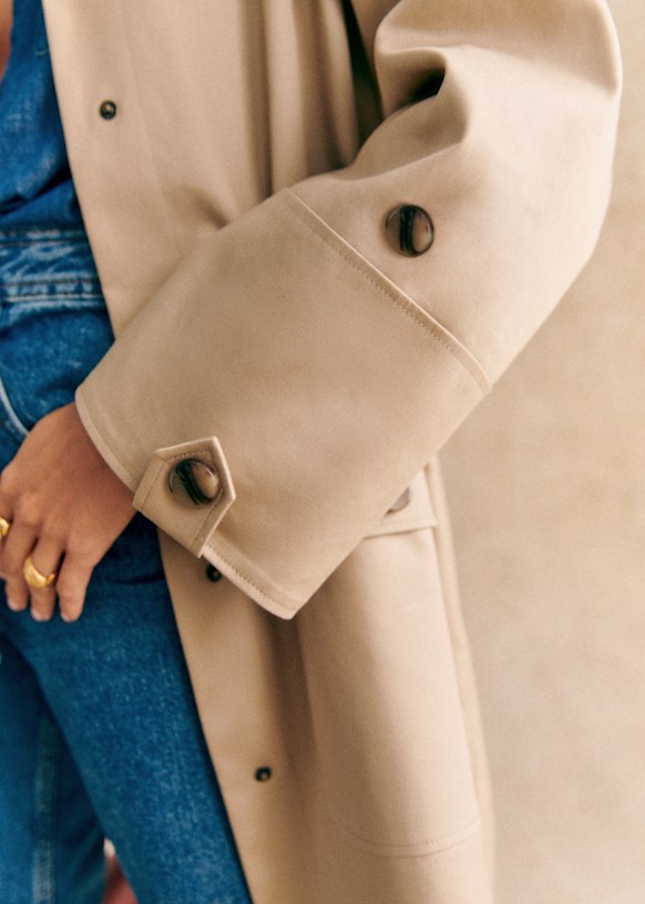 - Cierre con botones exteriores y botones de presión ocultos en la parte delantera central