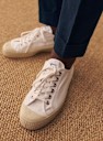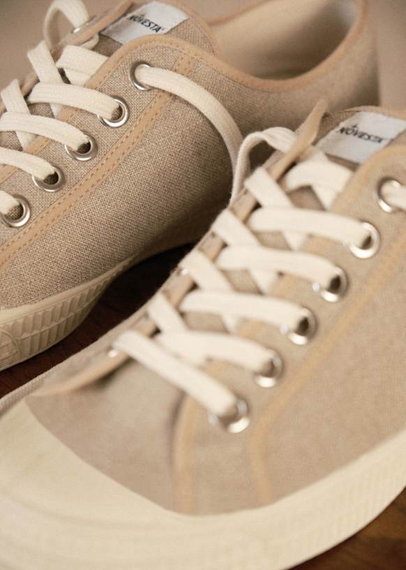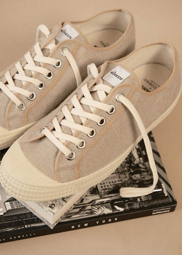 Octobre s'est associé au savoir-faire de la marque Novesta pour vous proposer une paire de sneakers d'exception. Le modèle «Star Master» est fabriqué à partir de matériaux durables et éthiques, principalement à partir de lin du fabricant Libeco et de caoutchouc naturel.