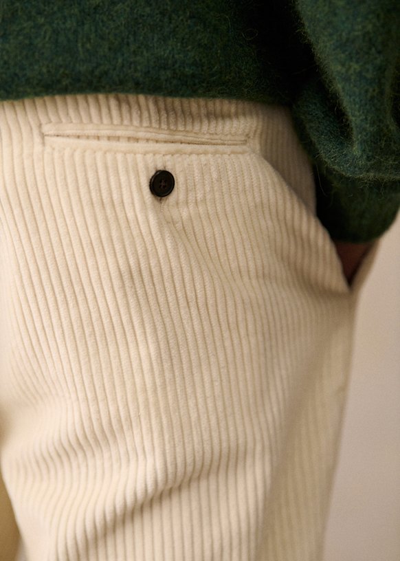 - 2 poches arrières passepoilées avec fermetures boutonnées