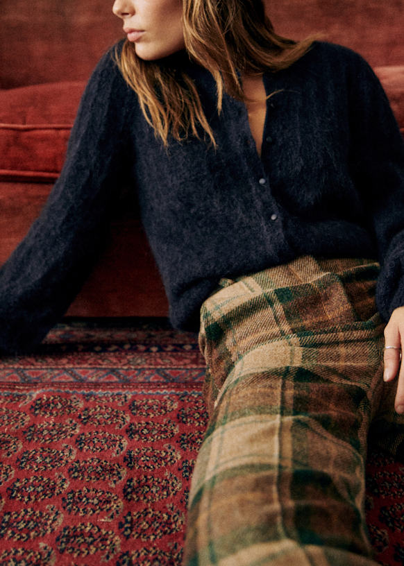 - Gilet en super kid mohair et laine à manches longues