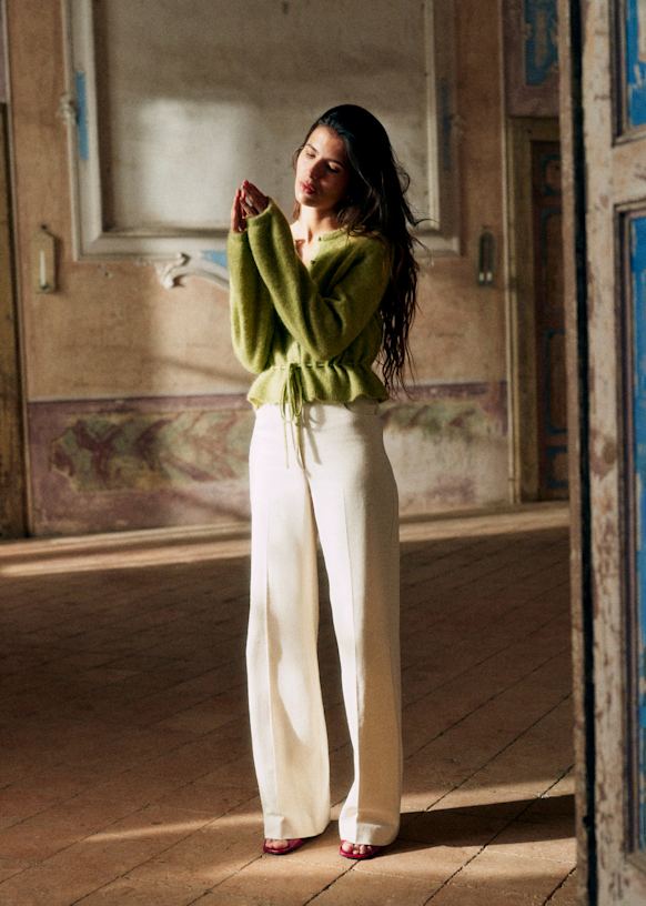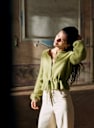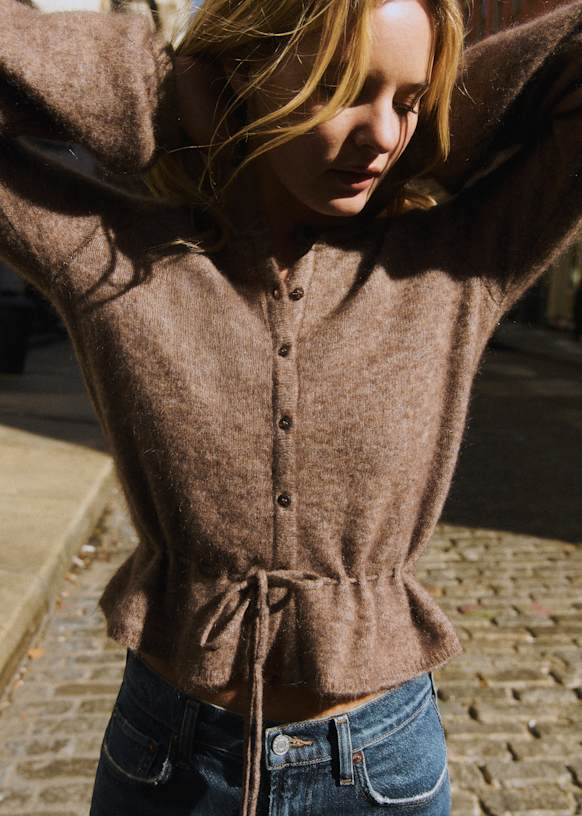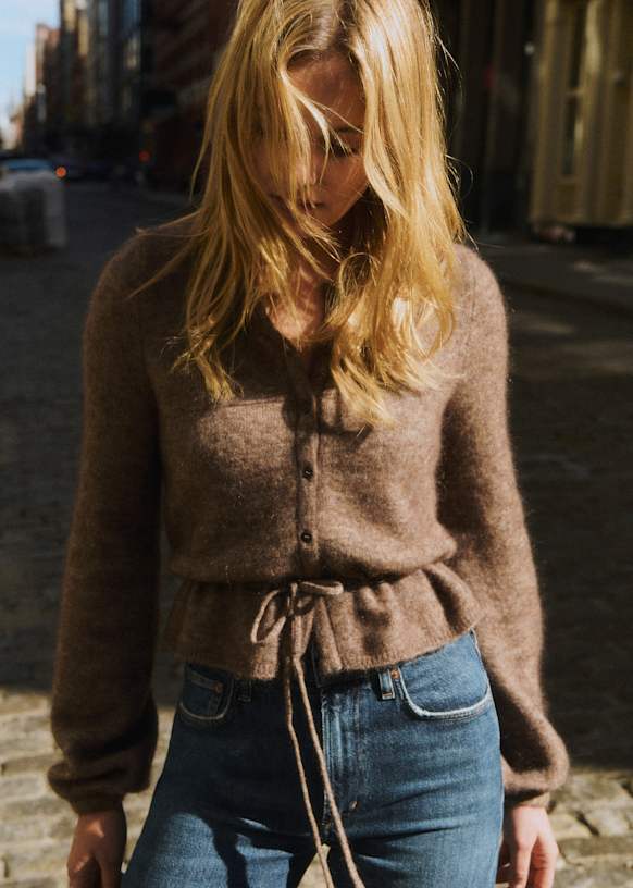 - Gilet court en super kid mohair et laine à manches longues légèrement ballon
