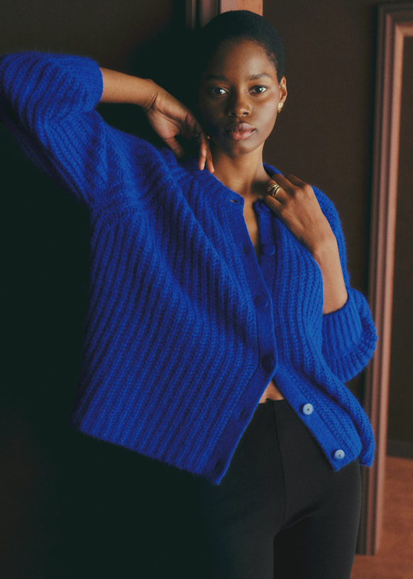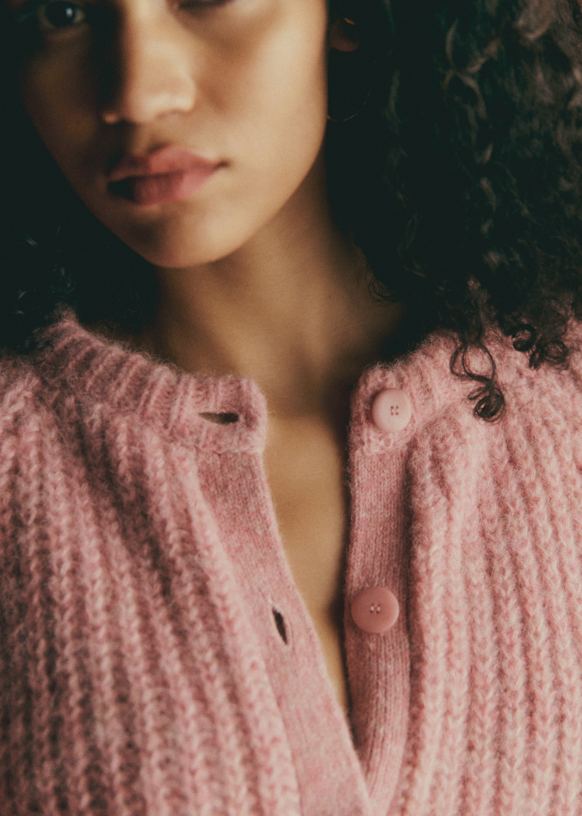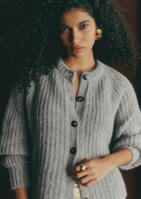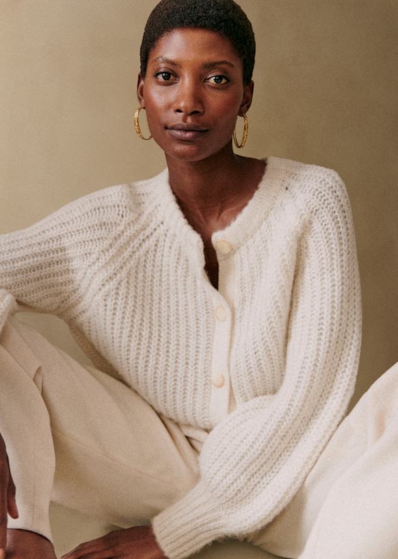 - Gilet en alpaga et laine à manches longues légèrement ballon