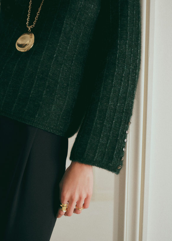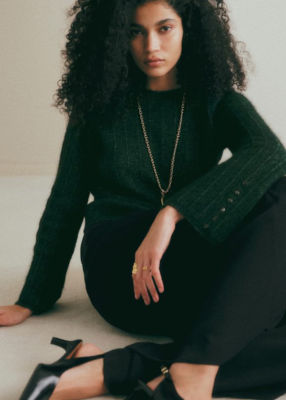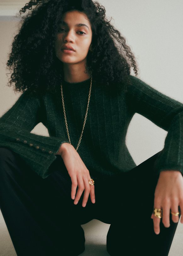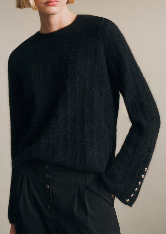 - Pull en super kid mohair et laine mérinos à manches longues légèrement évasée