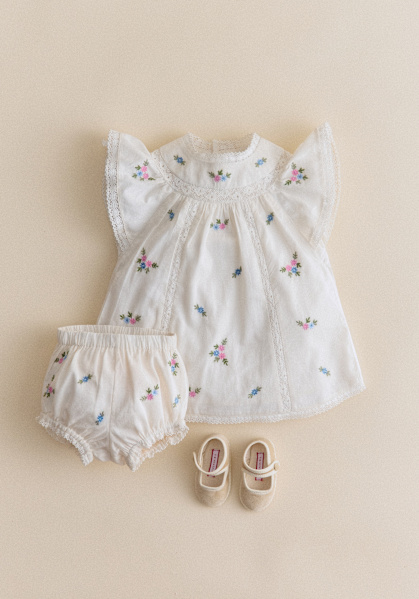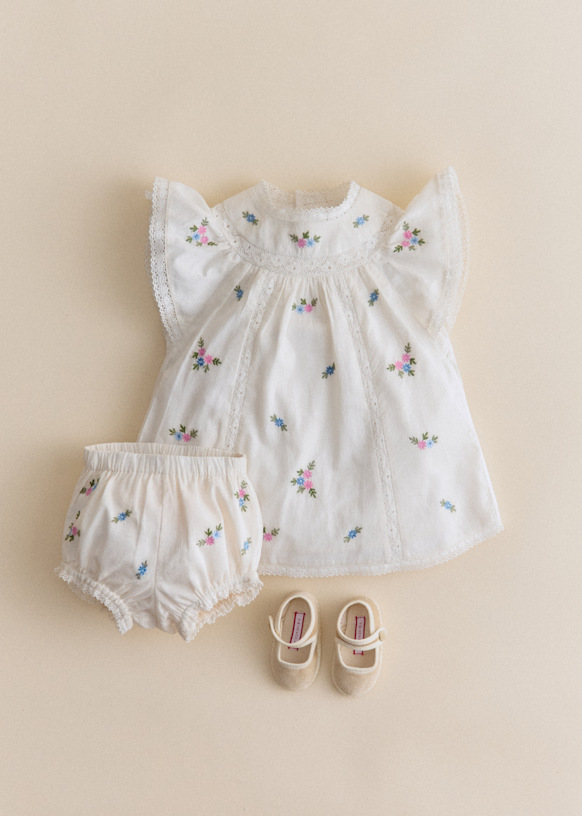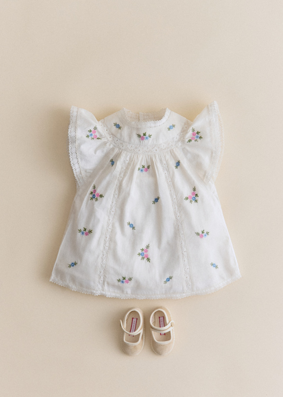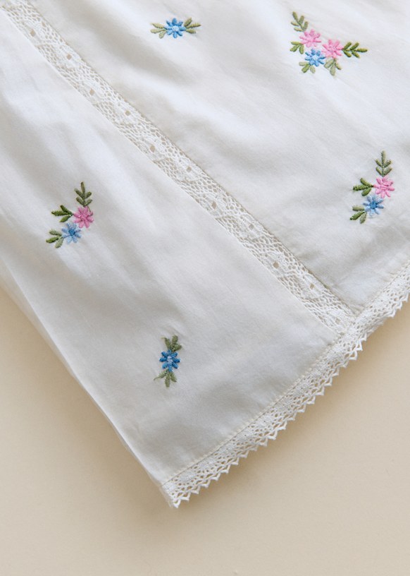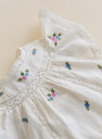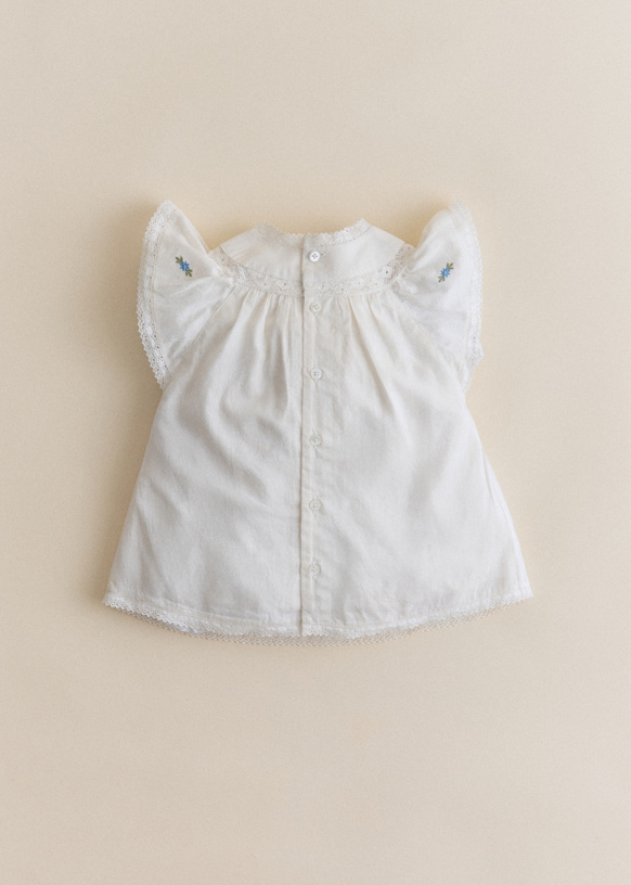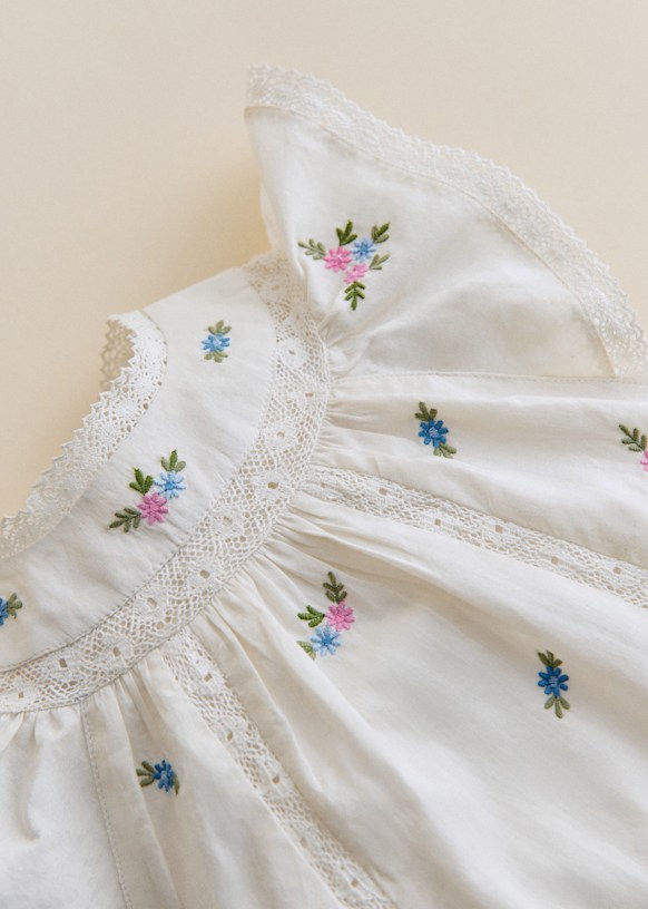 - Bandes dentelles insérées sur le devant, sur le col et à l'emmanchure
