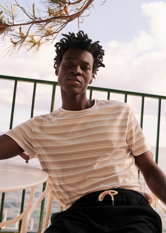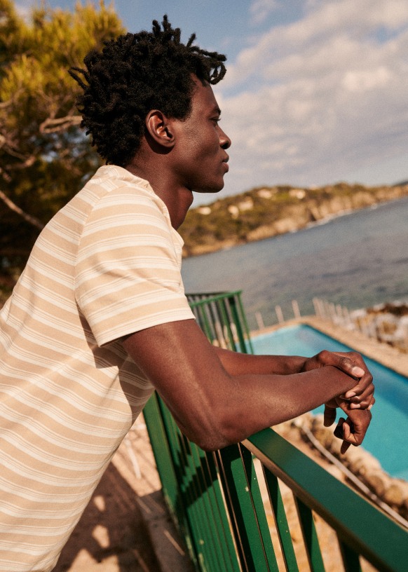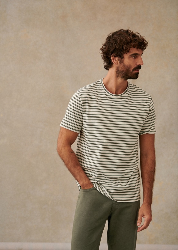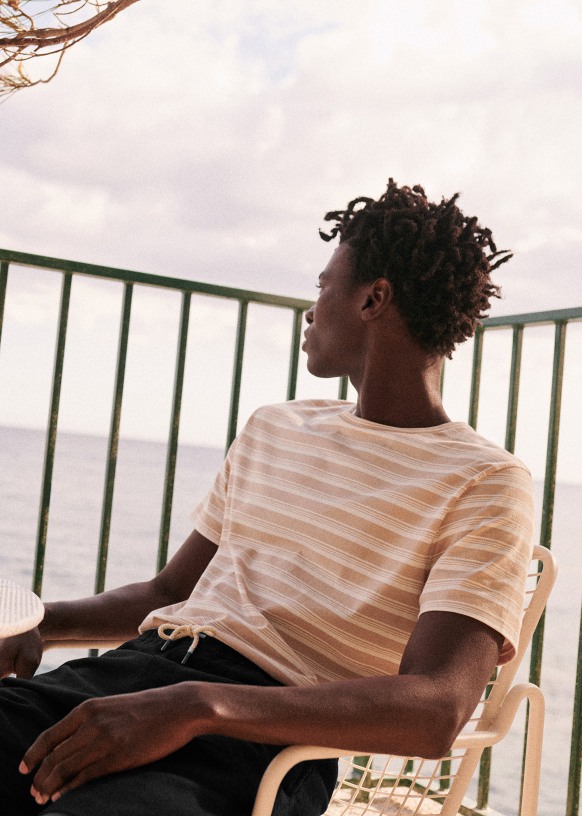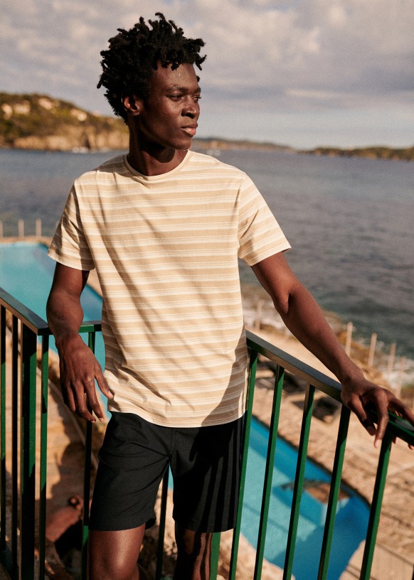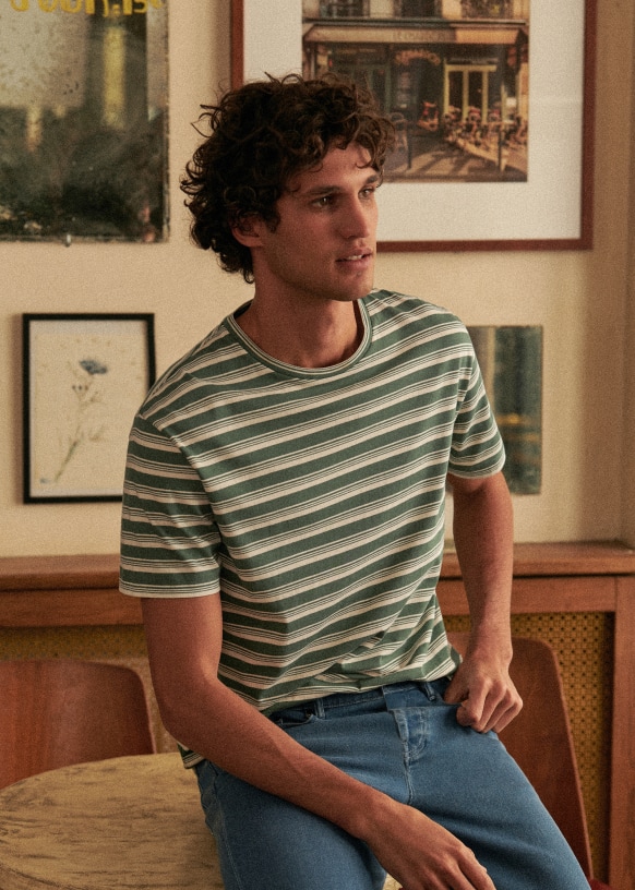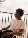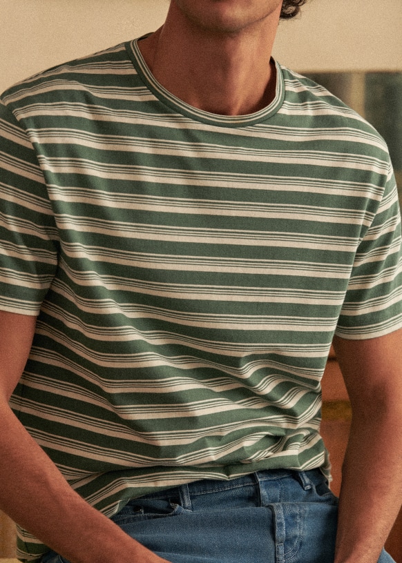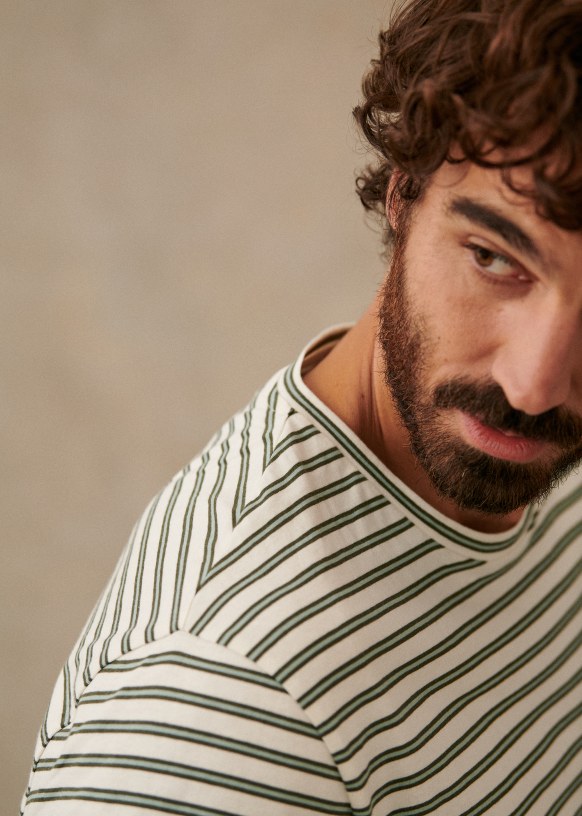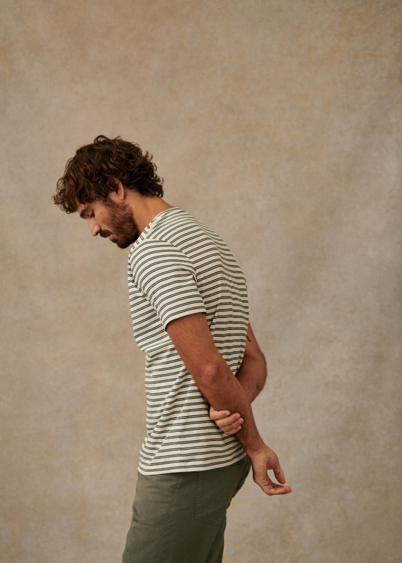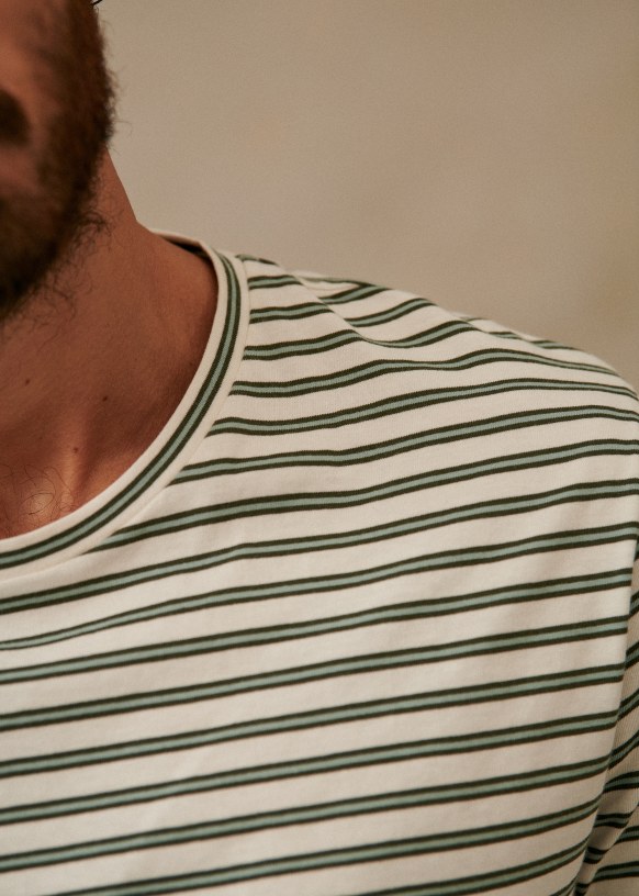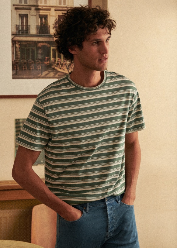 Un T-shirt col rond à rayures développé exclusivement pour le studio. Facile à porter, il ajoute une touche de sophistication à n'importe quelle tenue décontractée.