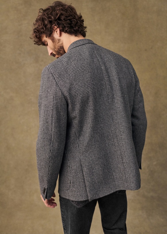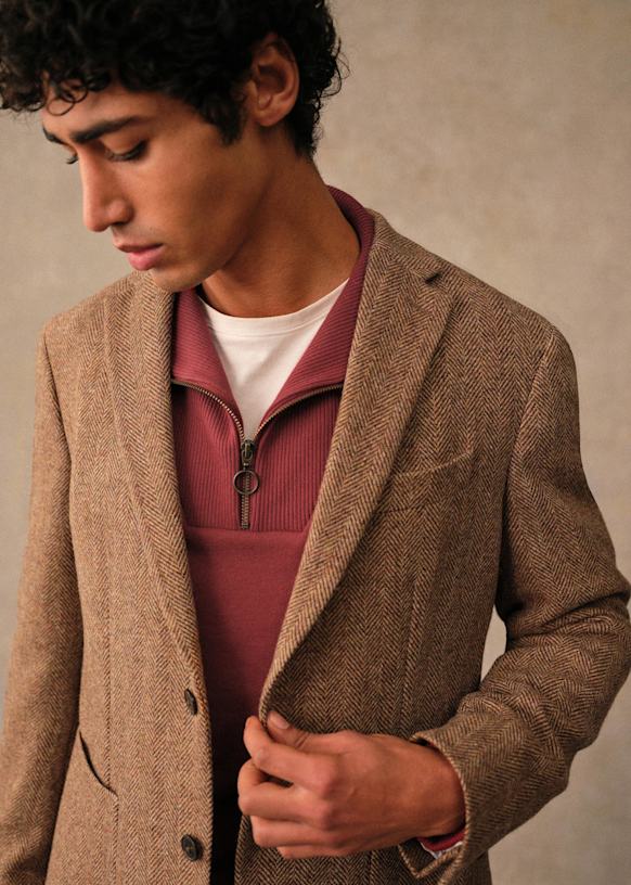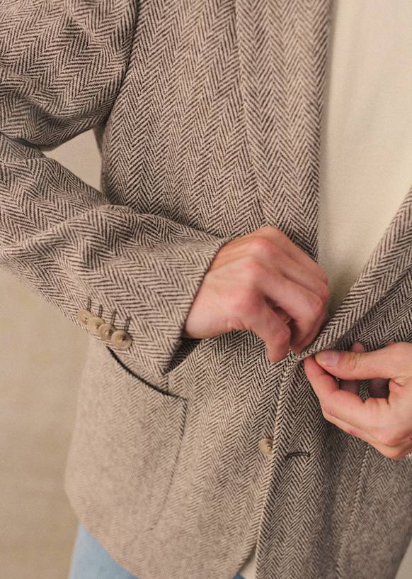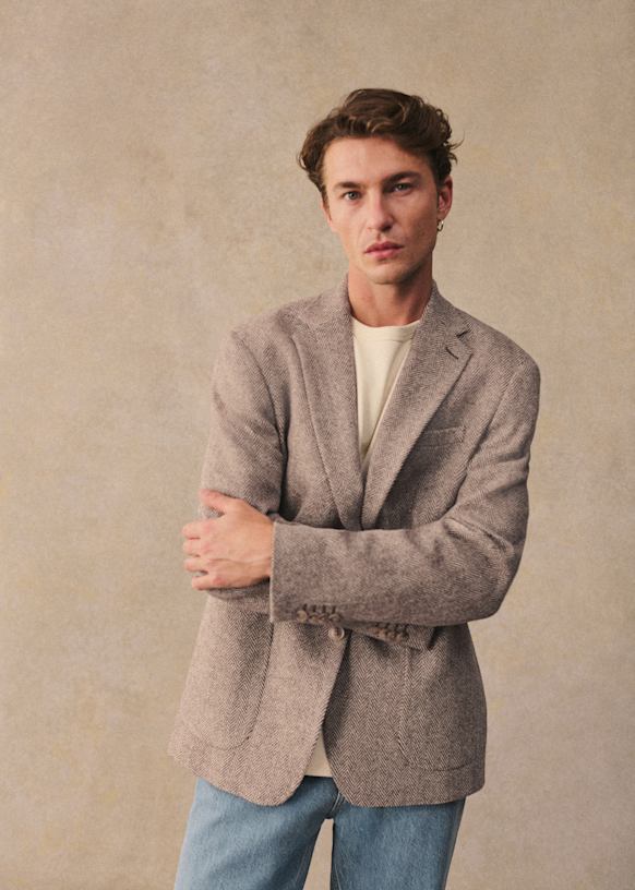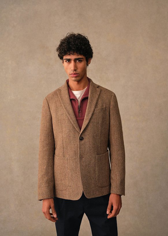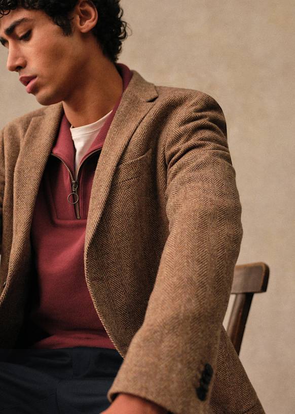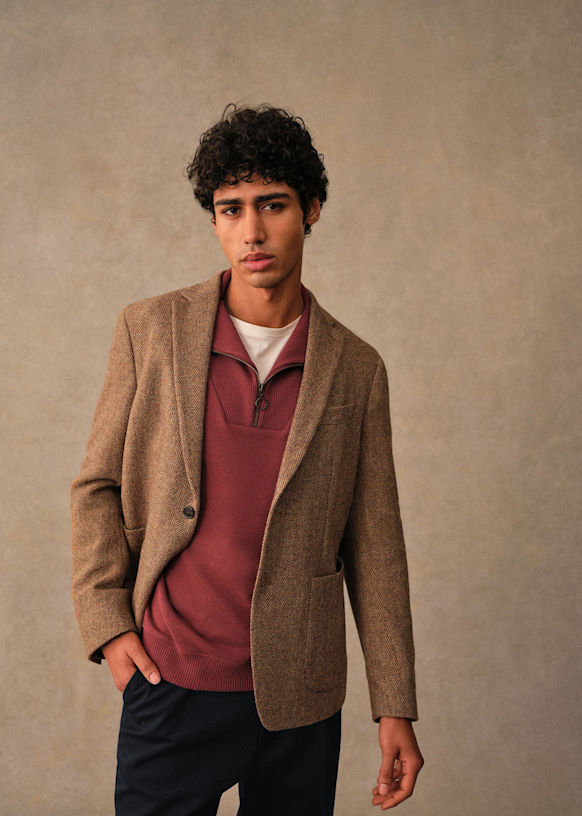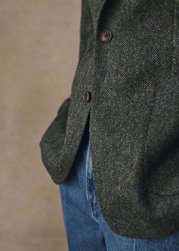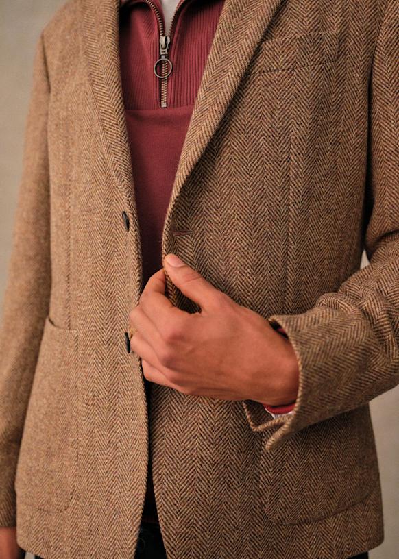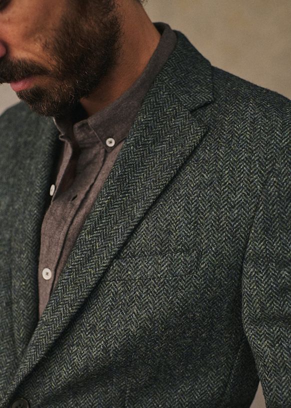 A jacket with character, the Riddle jacket features a wide lapel, patch pockets and a butterfly lining for lightweight comfort. It weighs is 233g/m².