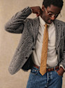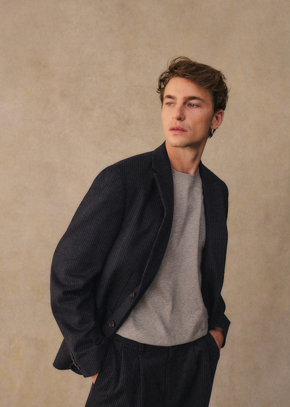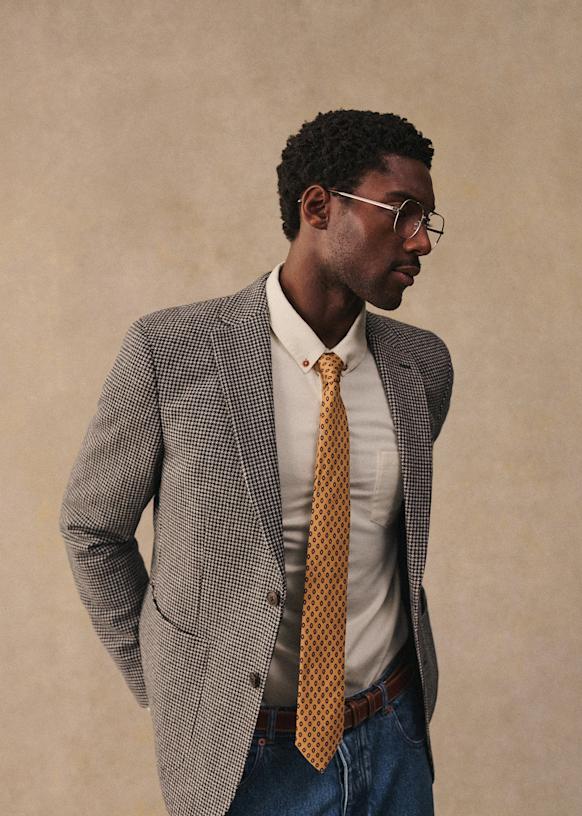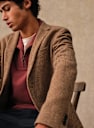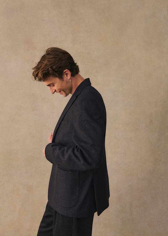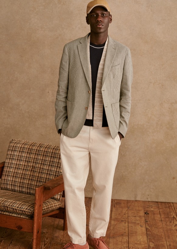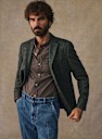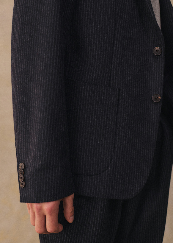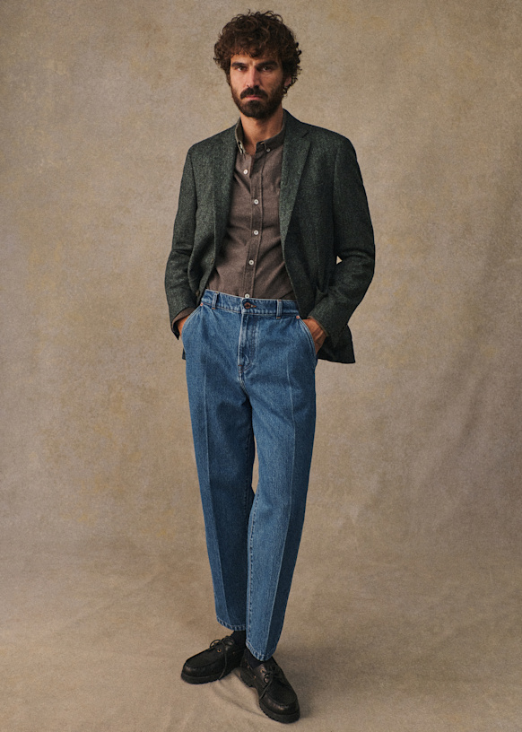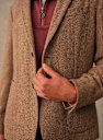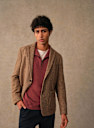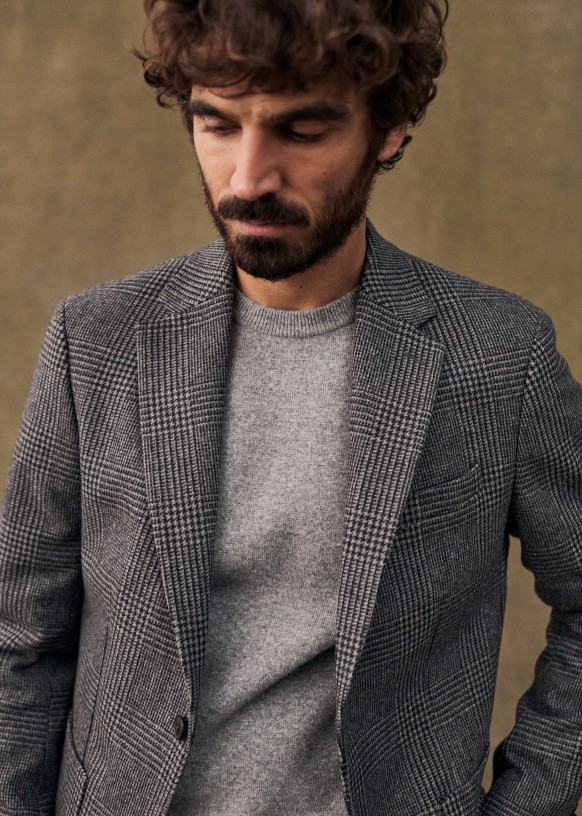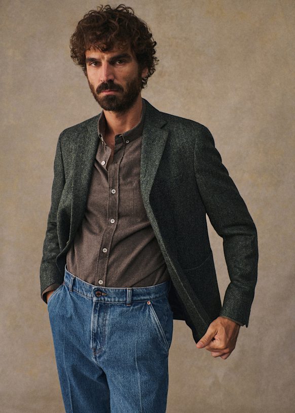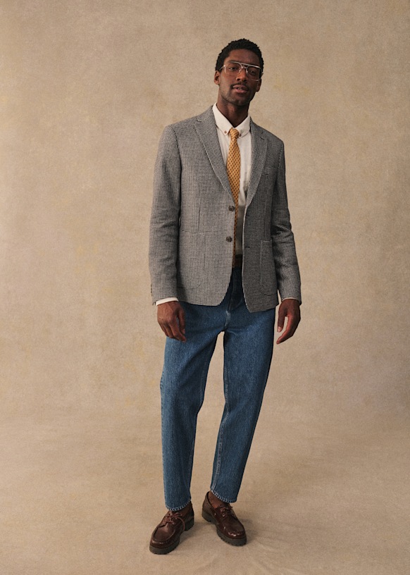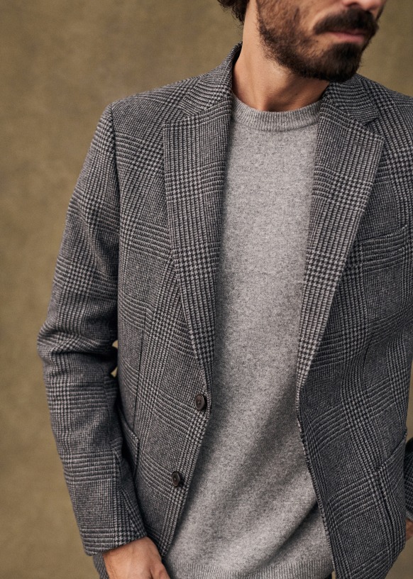 A jacket with character, the Riddle jacket features a wide lapel, patch pockets and a butterfly lining for lightweight comfort. It weighs is 233g/m².