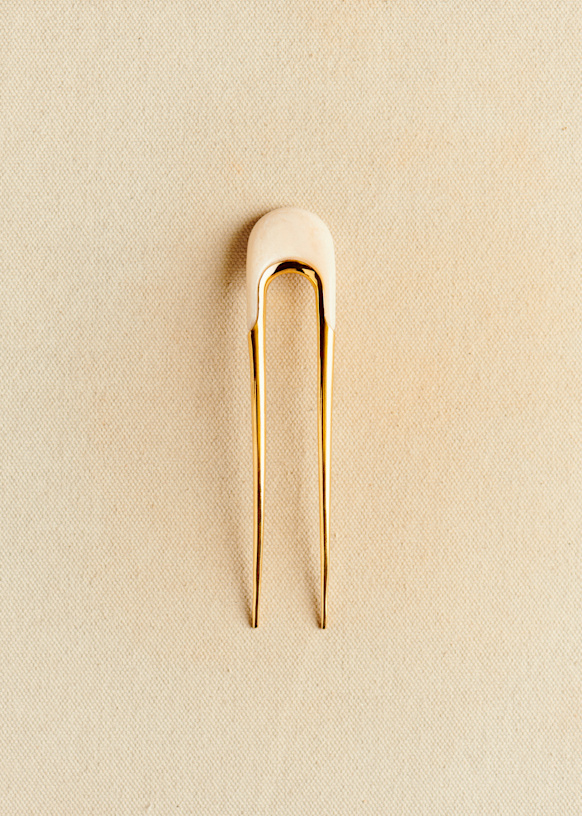 - Fijne vergulde haarspeld van gerecycled messing en hars