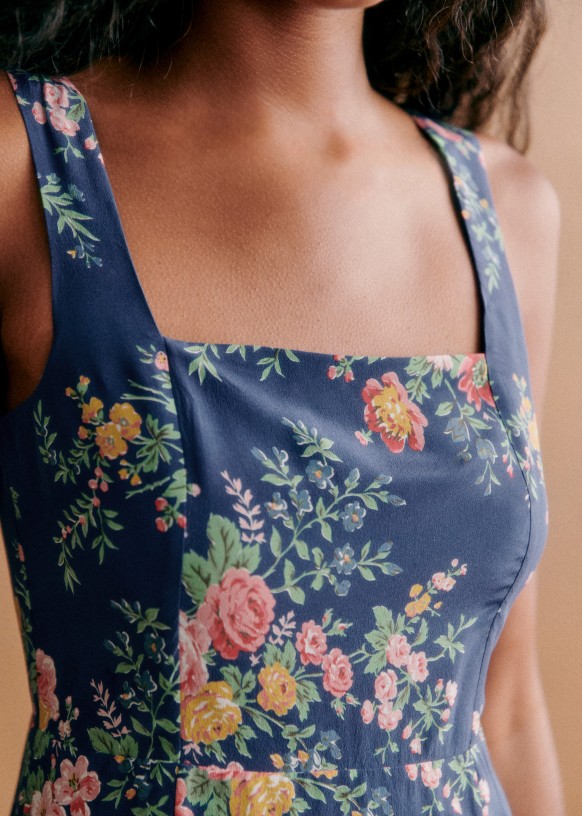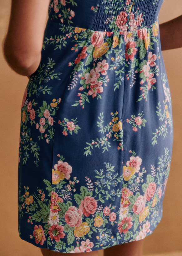 - Bedrukte korte jurk met dikke banden
