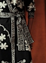 - Borduurwerk op de voorkant, mouwen, riem en manchetten