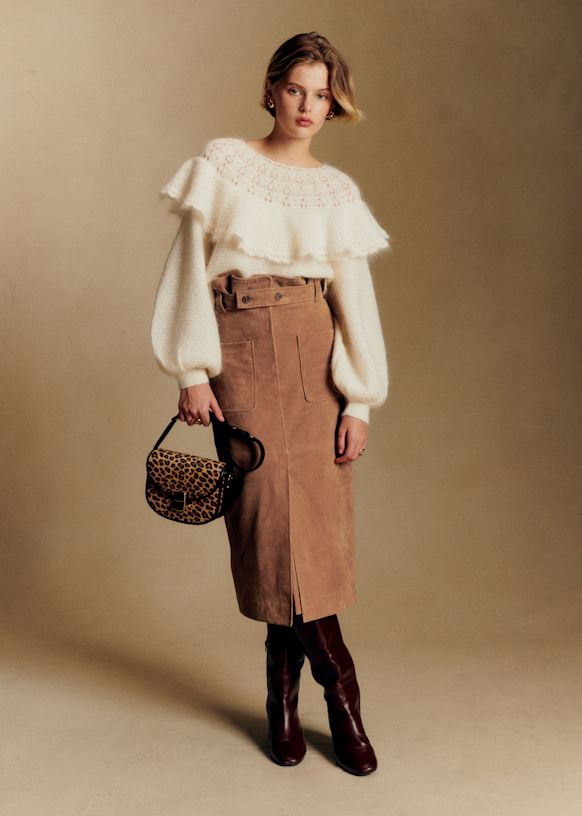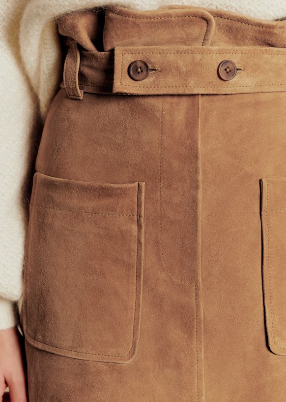 - Paperbag model aangesnoerd met een afneembare riem met knopen