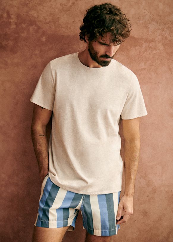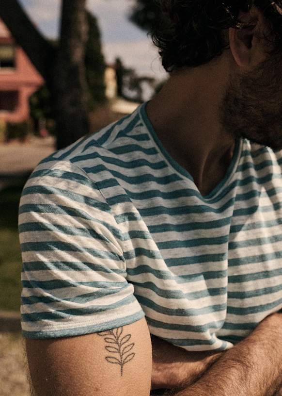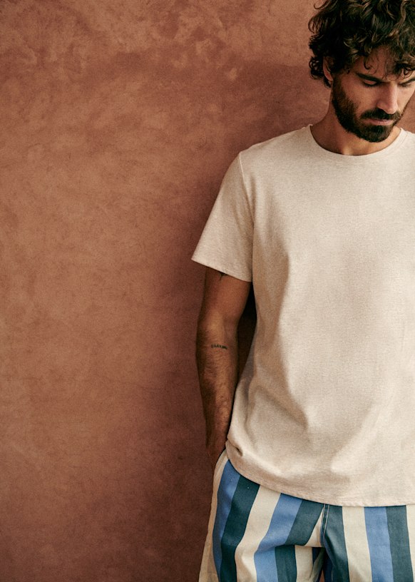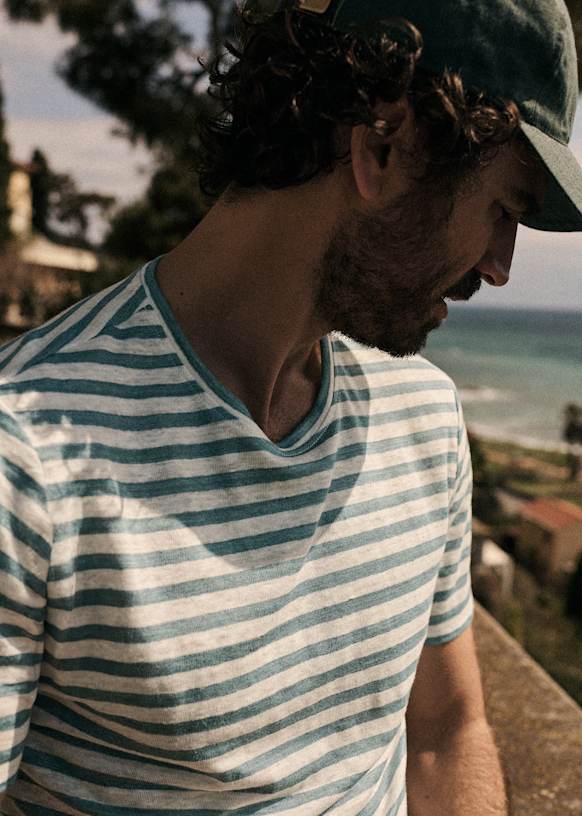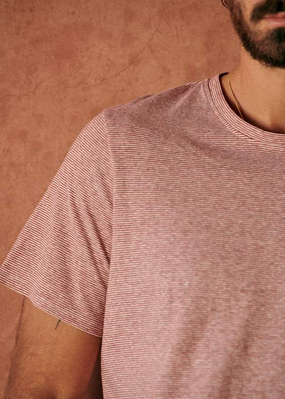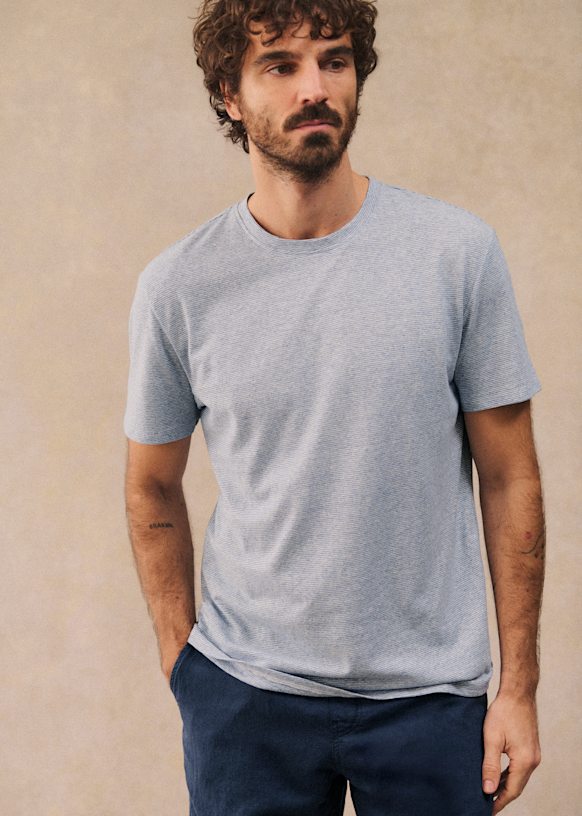 The Fabio t-shirt in linen cotton, lighter than our iconic and timeless Sonny t-shirt, and highly breathable, has become a must-have for men's wardrobes.