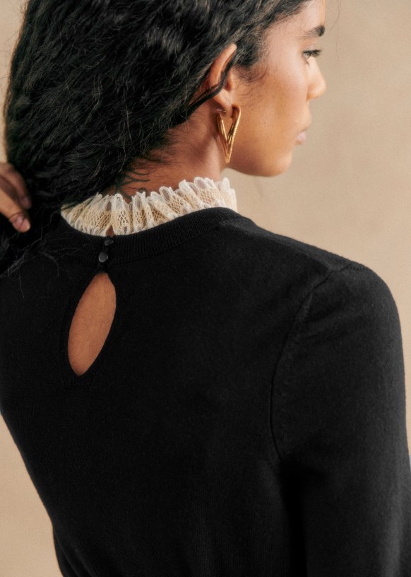 - Camisola de lã merino de mangas compridas ligeiramente em balão