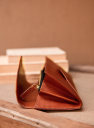 - Interior: um bolso com fecho de correr, um bolso chapado e seis divisórias para guardar cartões
