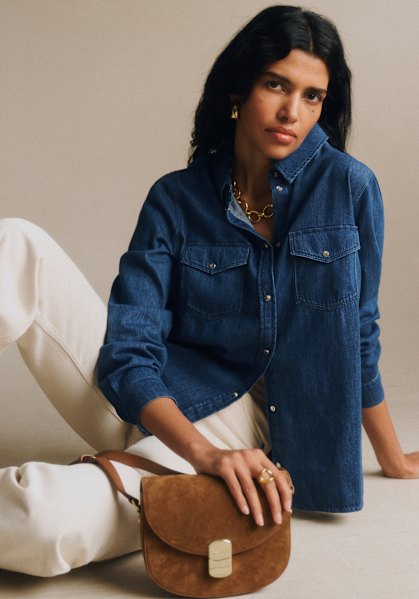 - Camisa de manga comprida em ganga