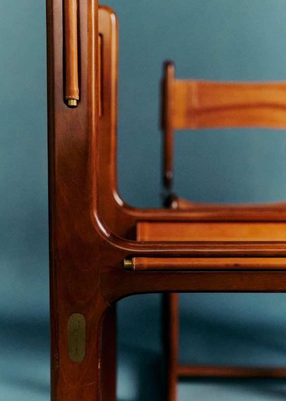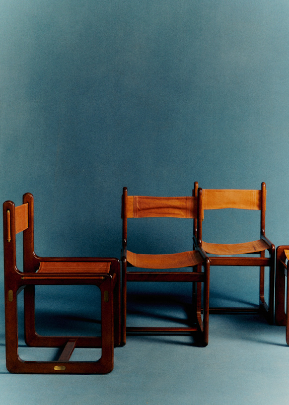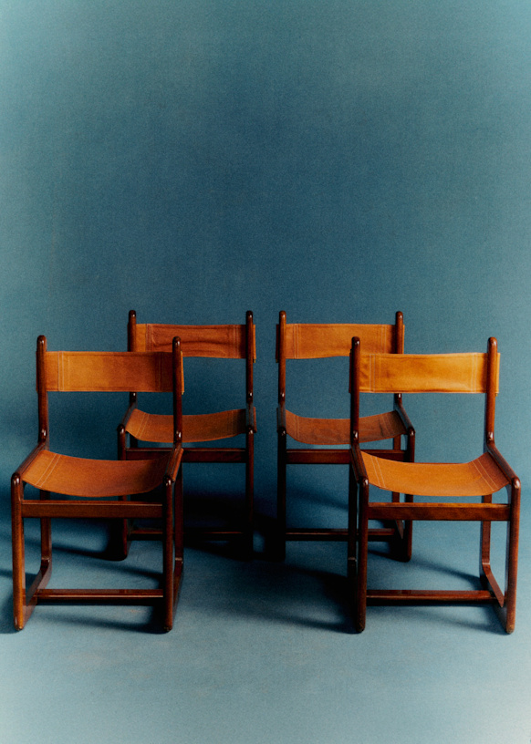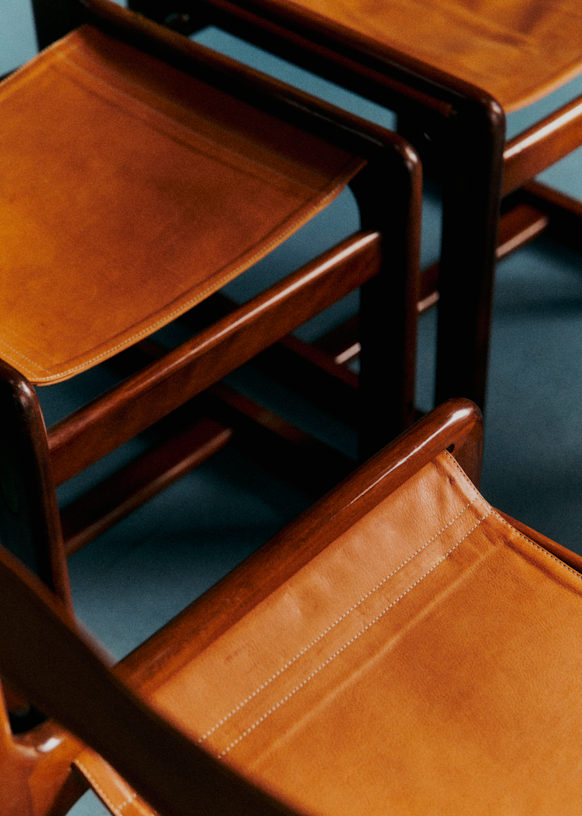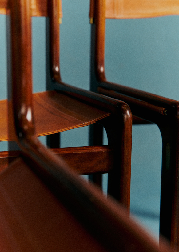 - Lot de chaises en cuire et bois de rose par le designer Gigi Radice