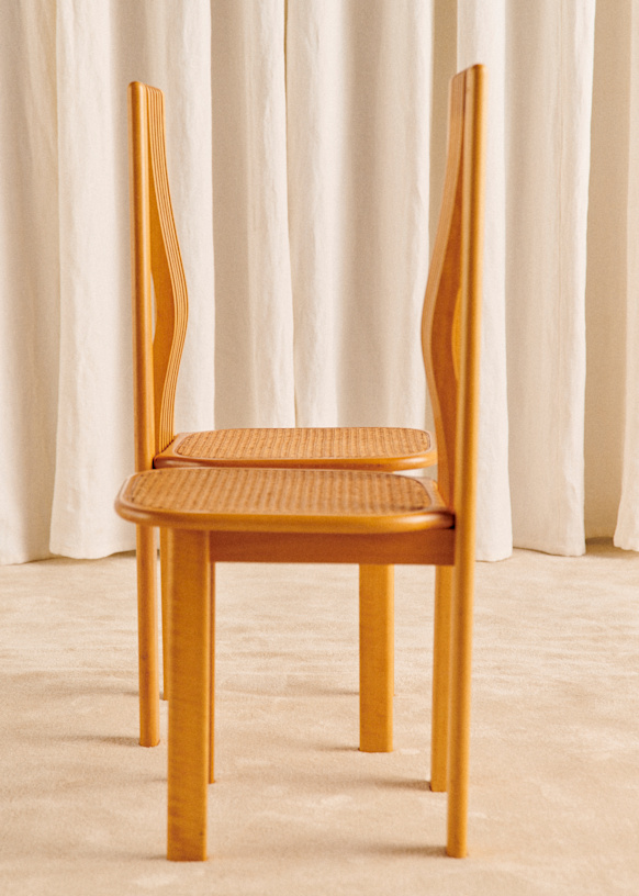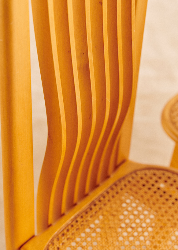 - Structure en bois et assise en cannage