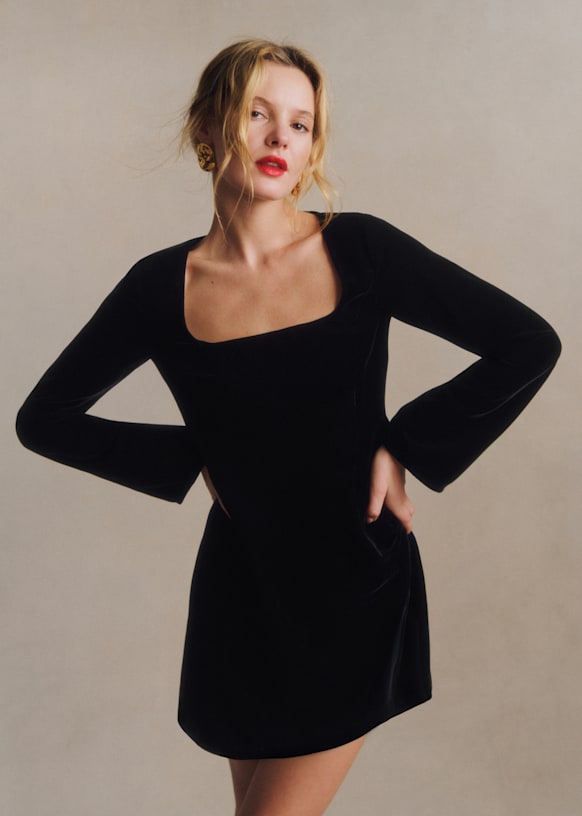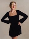 - Robe courte en velours lisse à manches longues