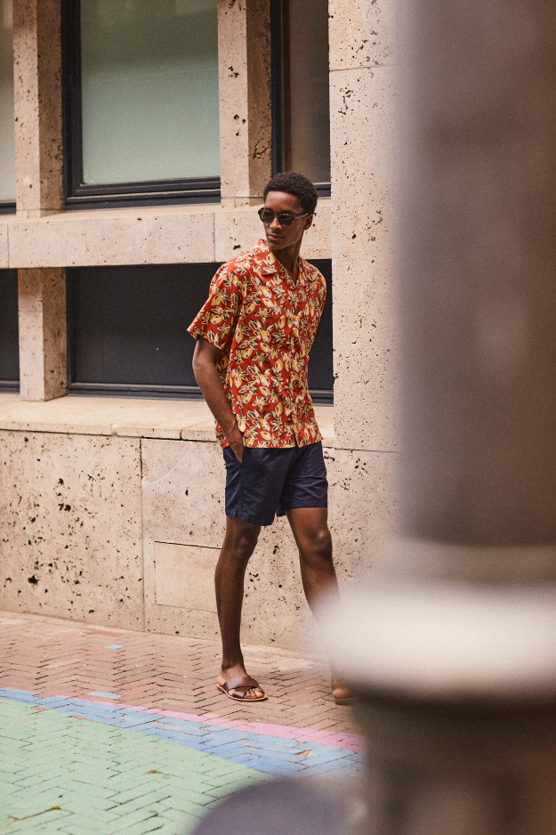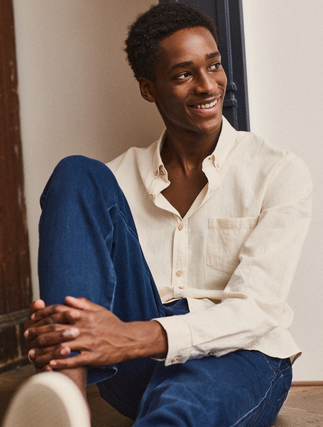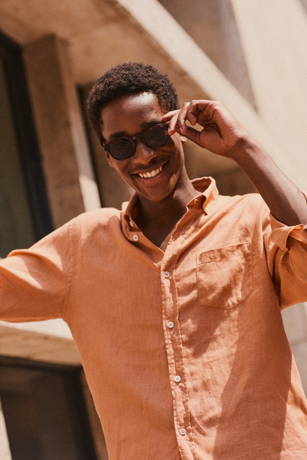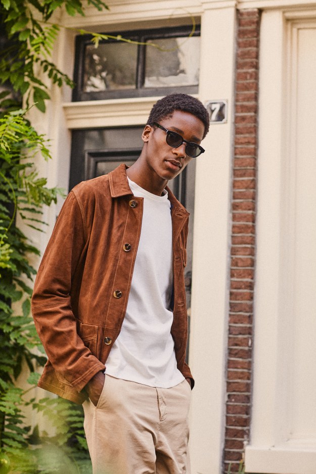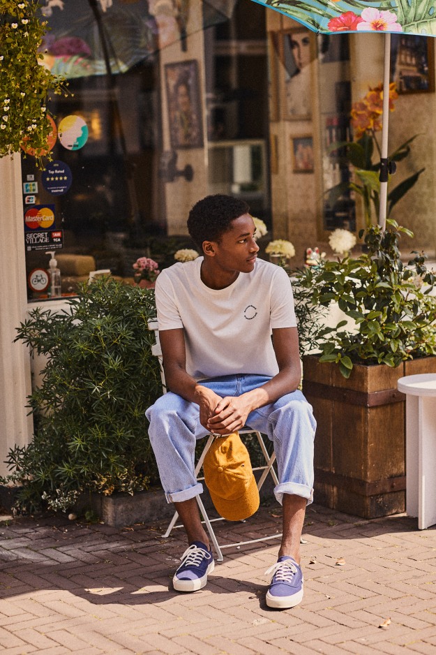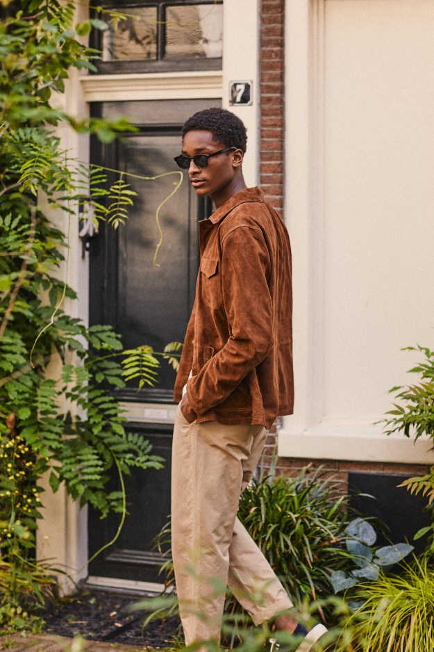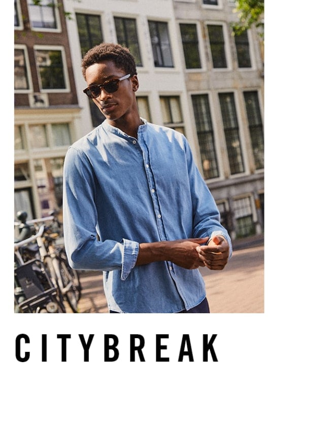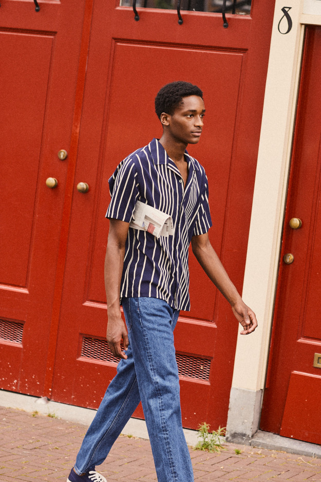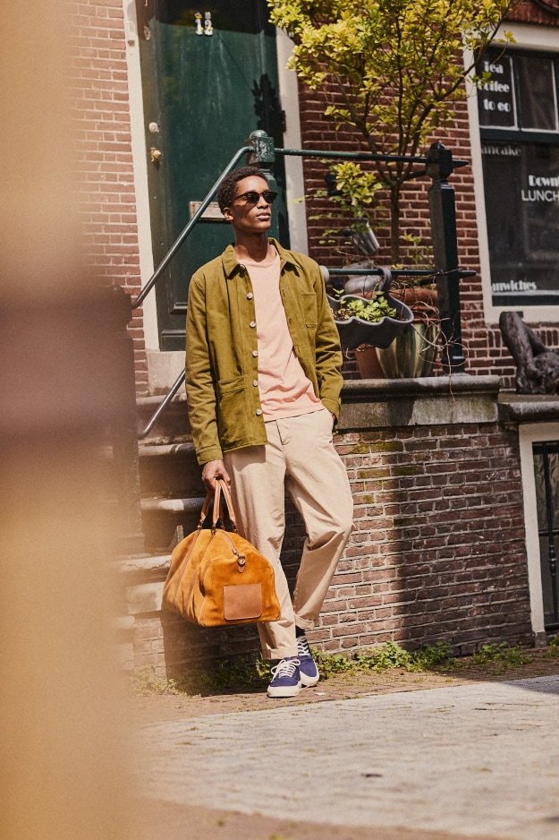 For those unavoidable rain showers, go for our khaki or pink Almafi over shirt, the Devon jacket in light denim (with a ribbed velvet collar), and our khaki or navy Walton sneakers, which are more adapted to fresh, Amsterdam evenings.