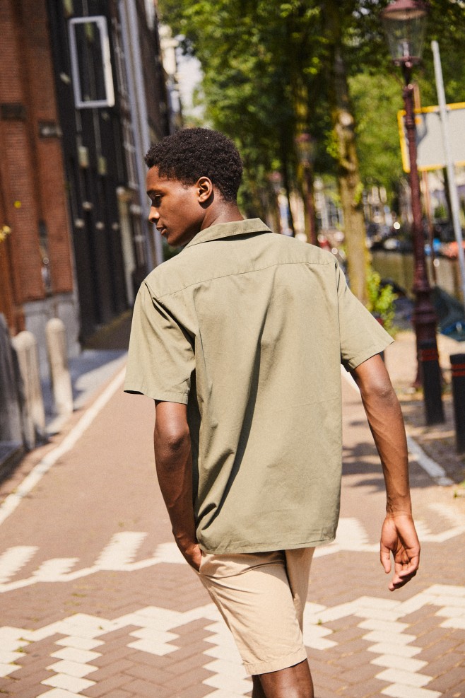 For any cultural excursions in the sun, from Rembrandt’s house to the Rijksmuseum via the Hortus Botanicus, Ivy and Bros, IJ-Hallen or Chekpoint Charlie (we’ll tell you more below), pair the Capri shirt with yellow or green stripes with our khaki Newport shorts, and the grey or camel Alan espadrilles.