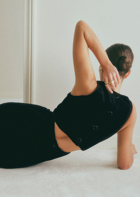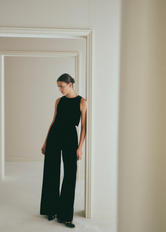 - Sleeveless velvet jumpsuit
