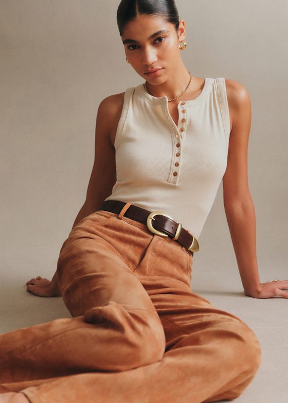- Round neckline with front button placket fastening