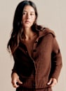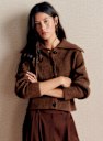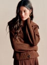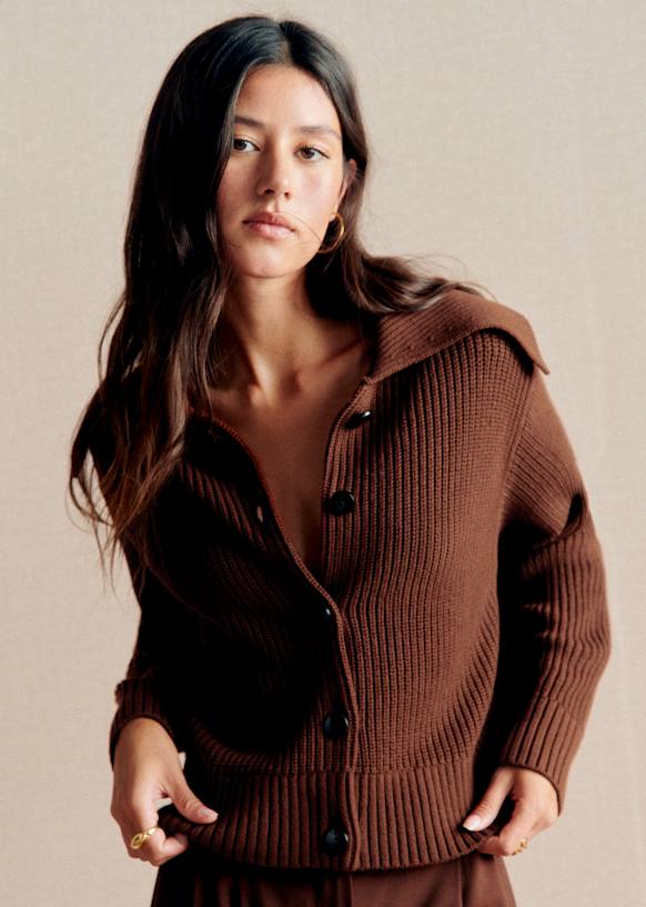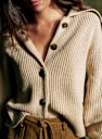 - Short cardigan in merino wool and organic cotton with slightly balloon long sleeves