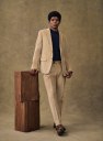 This classic two-button suit is a menswear essential. Its crushed twill fabric enhances its wintery touch.